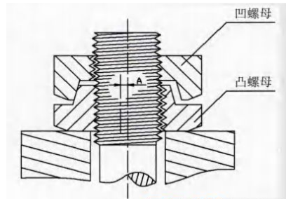 HARDLOCK是雙螺母(見圖3),內(nèi)螺母外側(cè)設(shè)有偏心的突起;外螺母為普通螺母結(jié)構(gòu),其內(nèi)側(cè)設(shè)有同心的凹槽;外螺母備緊時內(nèi)螺母的外側(cè)凸起與螺栓不同心,內(nèi)螺母的偏心突起與螺栓受到外螺母的擰緊擠壓產(chǎn)生徑向力,相當于在螺紋間隙中增加了鍥子,螺紋全方位鎖緊。